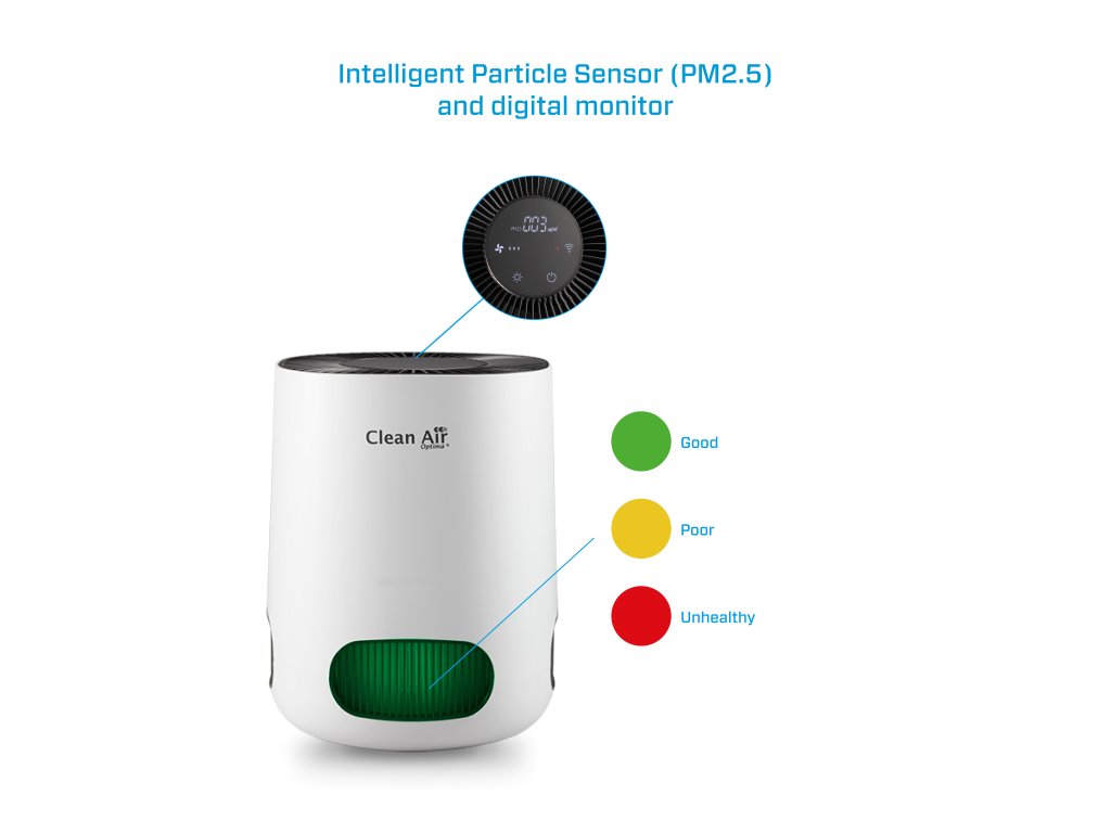 Inteligentní senzor průběžně měří znečištění (PM2.5) a automaticky přizpůsobuje výkon ve 4 rychlostech.