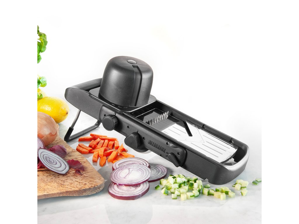 Zrychlete přípravu zeleniny a ovoce a získejte stejně přesné výsledky pokaždé. Mandolína ALLIGATOR zvládne plátky, julienne proužky i kostky (čtverec nebo „diamant“) – ideální na saláty, hranolky, přílohy i meal prep.