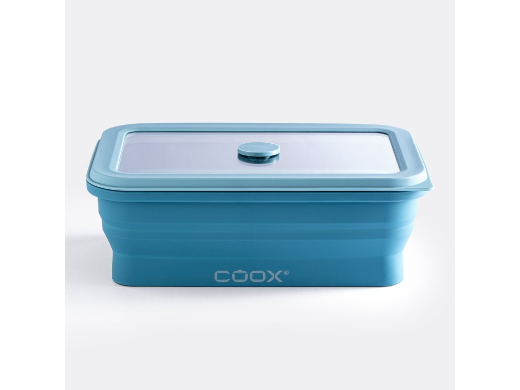 Skládací silikonová krabička na jídlo coox 1 l, se skleněným víčkem