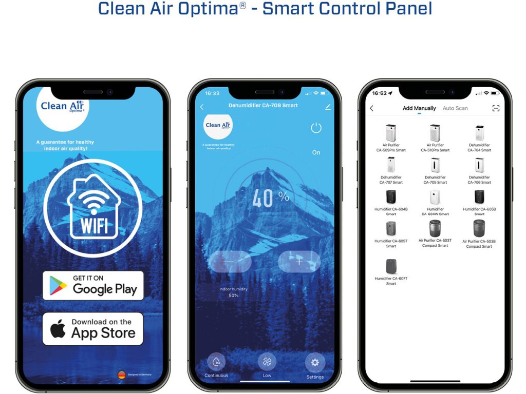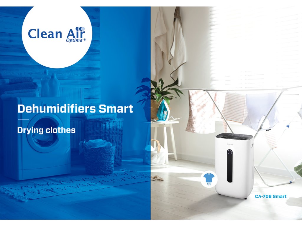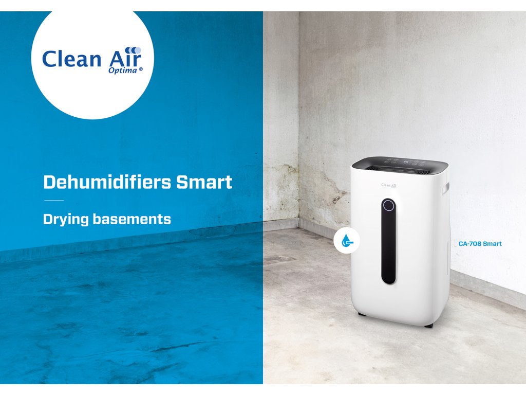 Clean Air Optima® CA-708 Smart nabízí odvlhčovací výkon až 25 litrů denně (při 30 °C a 80 % RV). Je ideálním řešením pro velké byty, kanceláře, sklepy, prádelny, sušárny, posilovny, sklady i obytné vozy.