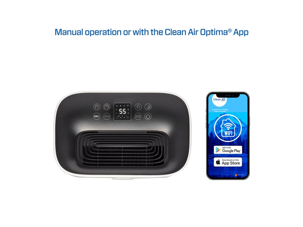 Ovládání přes digitální dotykový panel s osmi tlačítky nebo mobilní aplikaci Clean Air Optima® App.