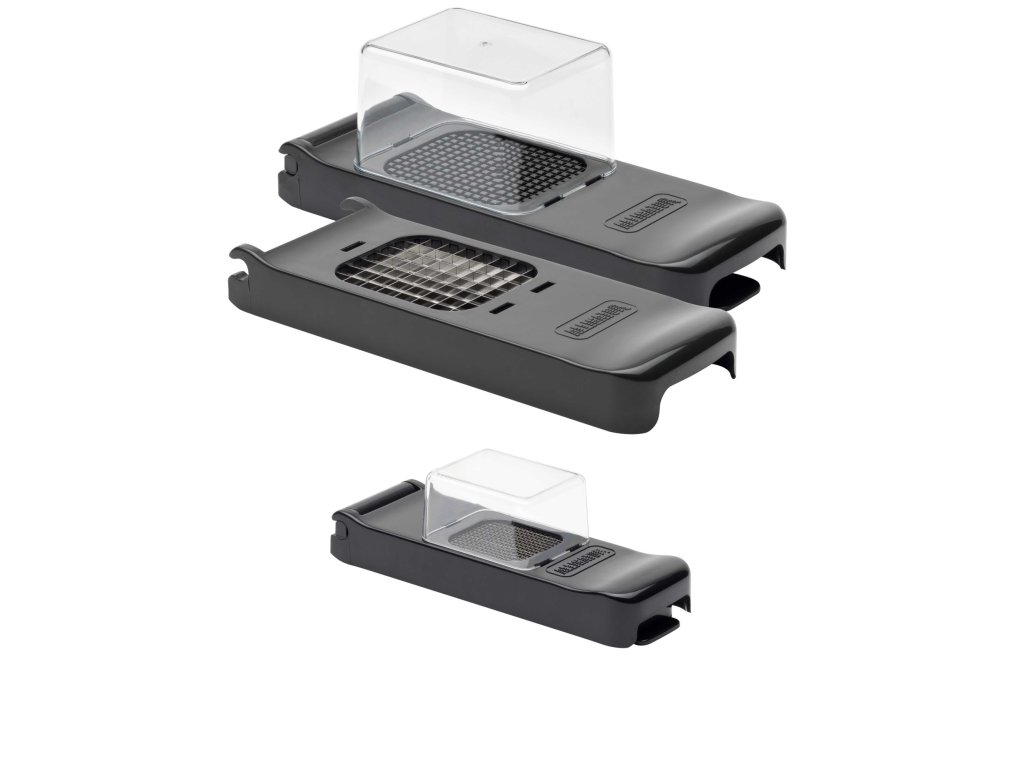 Malý sekáček umožňuje rychlou práci. Kráječ má mnoho použití, ale je obzvláště skvělý při krájení cibule na kostičky, protože vršek nejen udržuje vše úhledně obsažené, ale také pomáhá blokovat výpary, aby se nedostaly do vašich očí. Štěpkovací nástavec dokáže s malým úsilím nakrájet i tvrdou kořenovou zeleninu, což je skvělé např. i pro výrobu domácích hranolek. Mřížky se snadno čistí, stačí je nazvednout, aby se uvolnilo jakékoli zachycené jídlo, a snadno jej vyčistit. Lze mýt v myčce na nádobí.