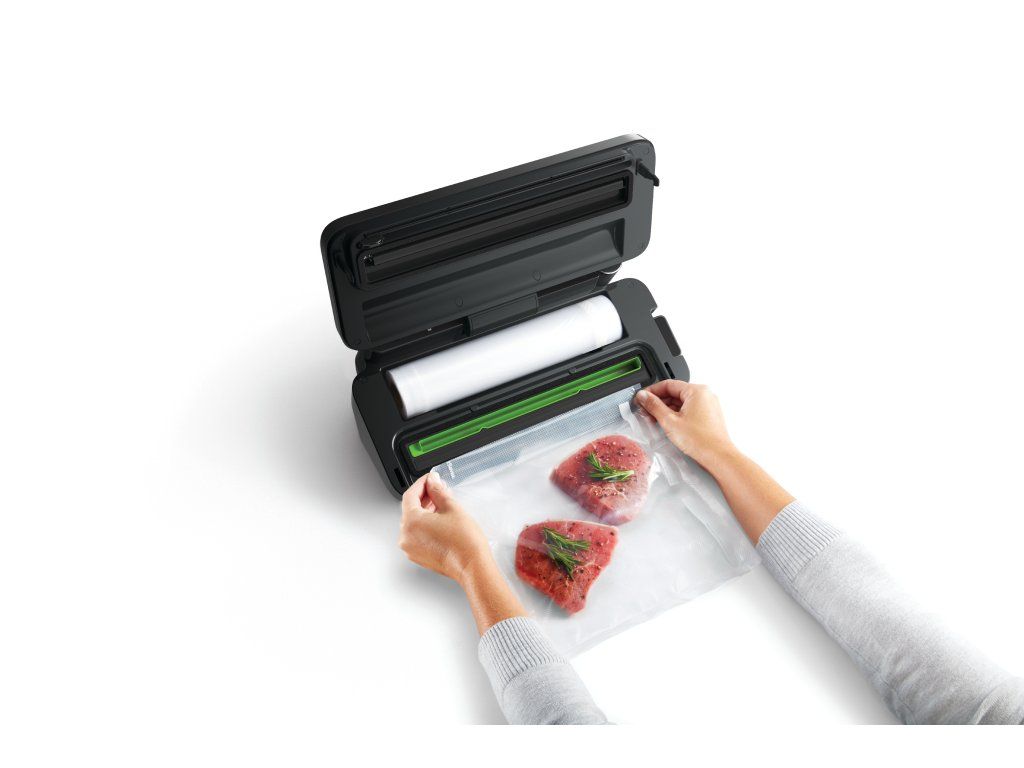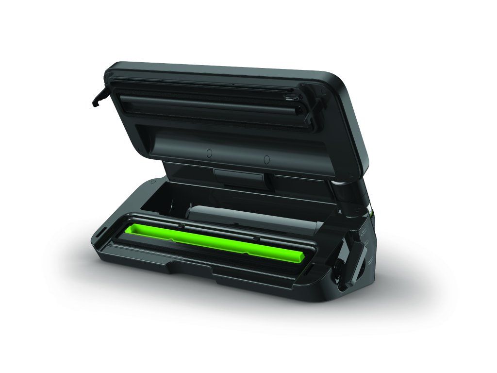 Spotřebič vytváří široký a pevný svár, který bezpečně udržuje vakuum. Zároveň disponuje integrovaným držákem fólie a řezacím nožem pro přípravu sáčků. Sáčky díky tomu vyrobíte opravdu rychle. Vakuovačka fólii využívá až o 30 % efektivněji a to díky kratší vzdálenost od desky stolu k těsnícímu pruhu pro optimální použití sáčku.