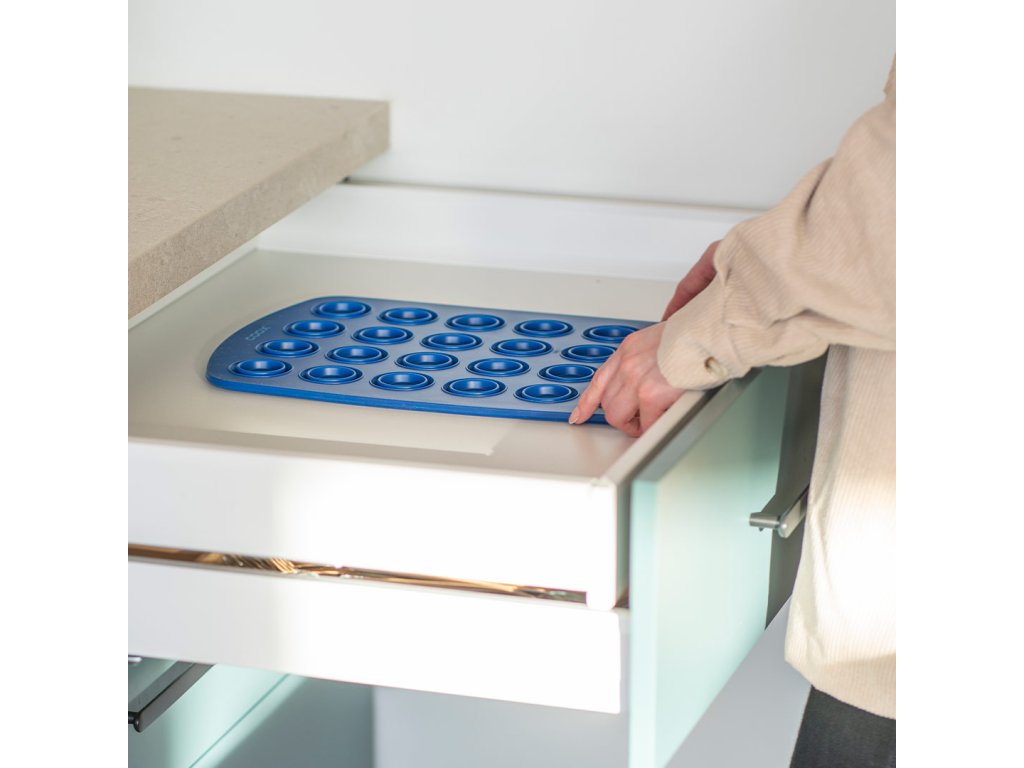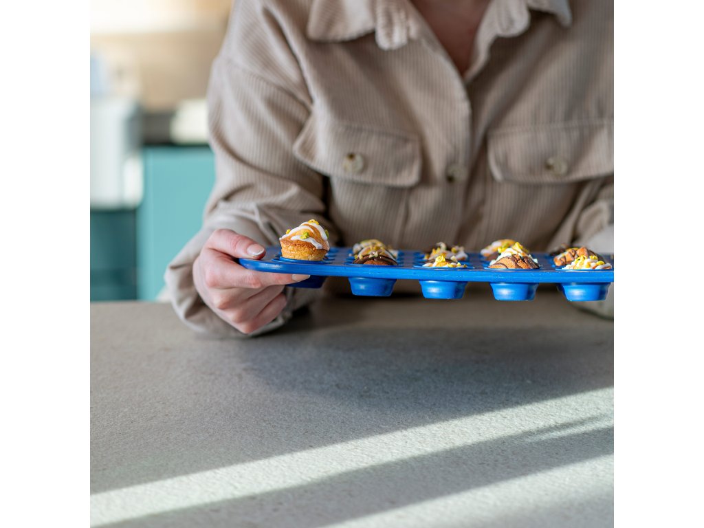 Praktická a moderní forma, se kterou bude pečení muffinů zábavnější, jednodušší a bez nepořádku. Je vhodná pro přípravu 24 muffinů o průměru 4,5 cm a všech klasických receptů na muffiny.