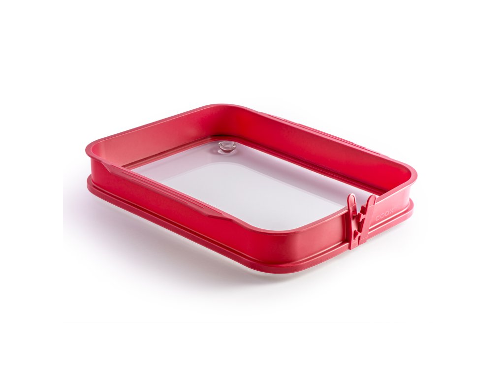 Velká zapékací forma coox přináší maximální pohodlí – po upečení jednoduše sejmete silikonový okraj a jídlo rovnou servírujete na skleněné desce. Ideální nejen pro lasagne a zapečené pokrmy, ale i pro přípravu oblíbených koláčů na plech.