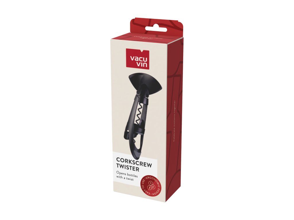 Představujeme vám vývrtku Vacu VinTwister. Tento ergonomický a inovativní otvírák je navržen tak, aby vyjmul každou zátku – ať už přírodní nebo syntetickou – jedním hladkým pohybem. Díky pevnému úchopu a pogumované rukojeti se vývrtka během používání neposouvá, což zaručuje bezpečné a pohodlné otevírání každé lahve.