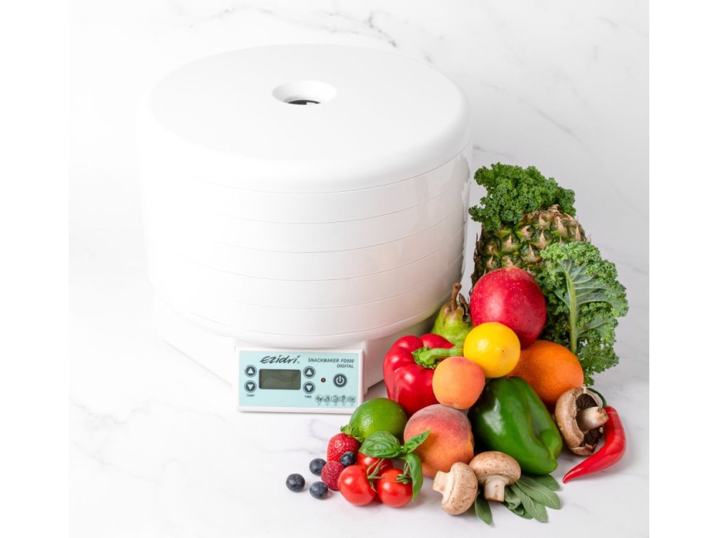 Zpracujte vaši úrodu ze zahrádky a pusťte se do sušení. S přístrojem Ezidri Snackmaker FD500 DIGITAL vám to půjde jako po másle. Díky jeho profesionálnímu provedení si potraviny zachovají maximální množství vitamínů, minerálů, stopových látek a vlákniny.