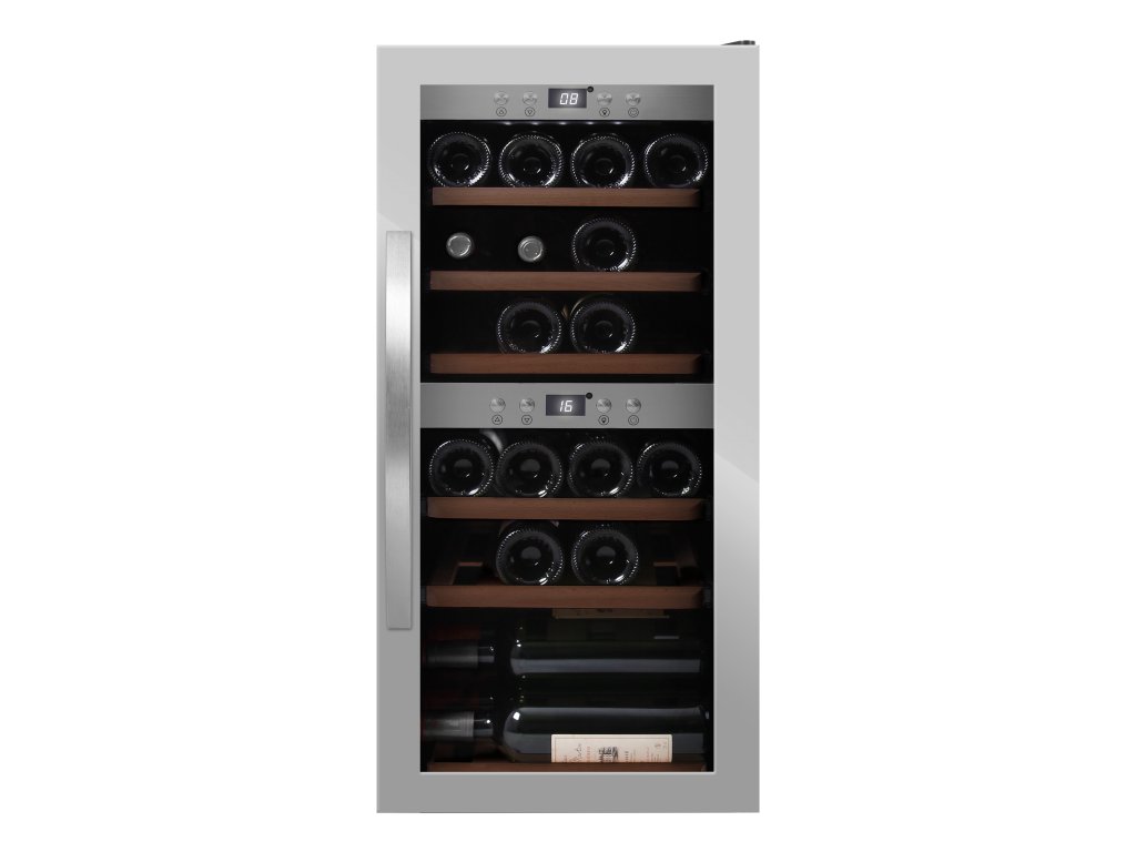 Vinotéka je navržena pro všechny typy lahví, takže je tu místo i pro vaše šumivá vína. Chladnička na víno má robustní tlačítka pro ovládání funkcí a nastavení se zobrazuje digitálně.